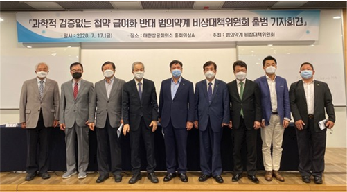 대한의사협회, 대한병원협회, 대한약사회, 대한의학회, 대한약학회, 대한민국의학한림원, 한국의대의전원협회 등 7개 전문가단체는 17일 서울 중구 대한상공회의소에서 ‘범의약계 비상대책위원회’를 출범하고 첩약 급여화 시범사업을 적극 저지하기로 뜻을 모았다고 밝혔다.