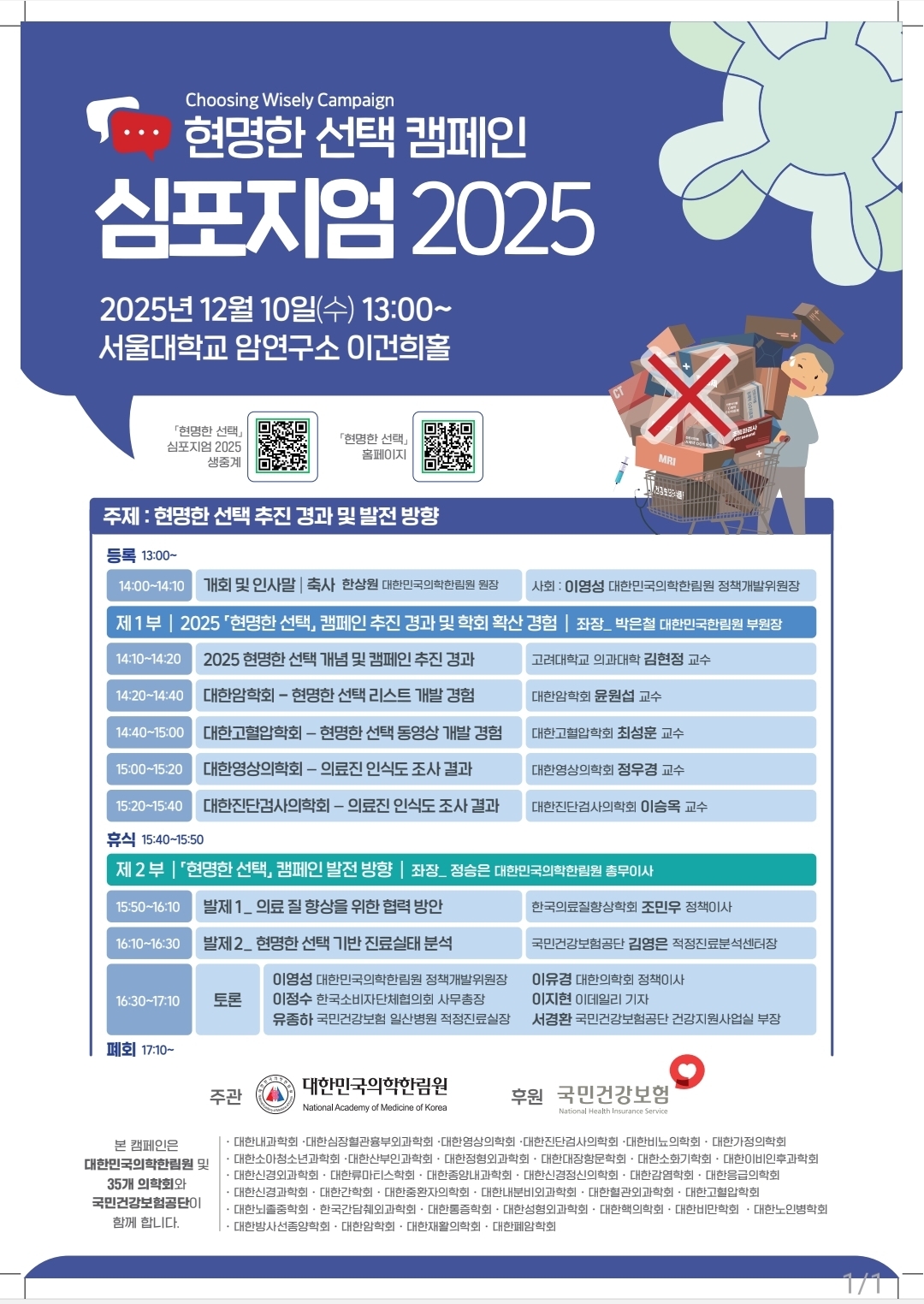 2025년 현명한 선택 캠페인 심포지엄이 아래와 같이 개최될 예정입니다.