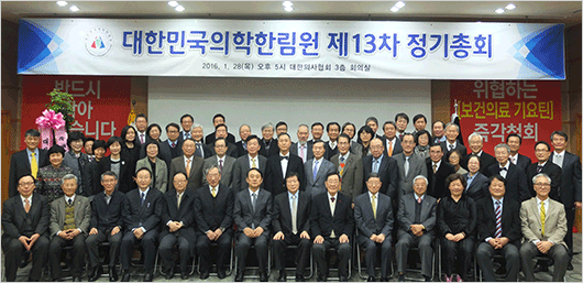 대한민국 의학한림원은 2016년 1월 28일 목요일 오후 5시에 대한의사협회 3층 회의실에서 제 13차 정기총회를 개최하고 2016년도 사업계획(안)과 예산(안)을 비롯한 주요안건을 심의∙의결하였습니다.