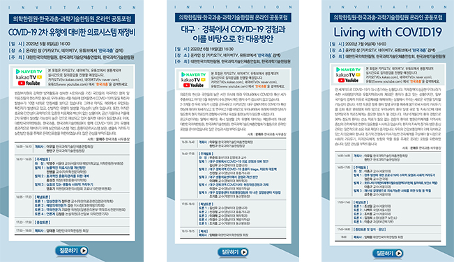대한민국의학한림원에서는 코로나19 특별위원회를 구성하고 3월부터 온라인 공동포럼을 진행하고 있다.